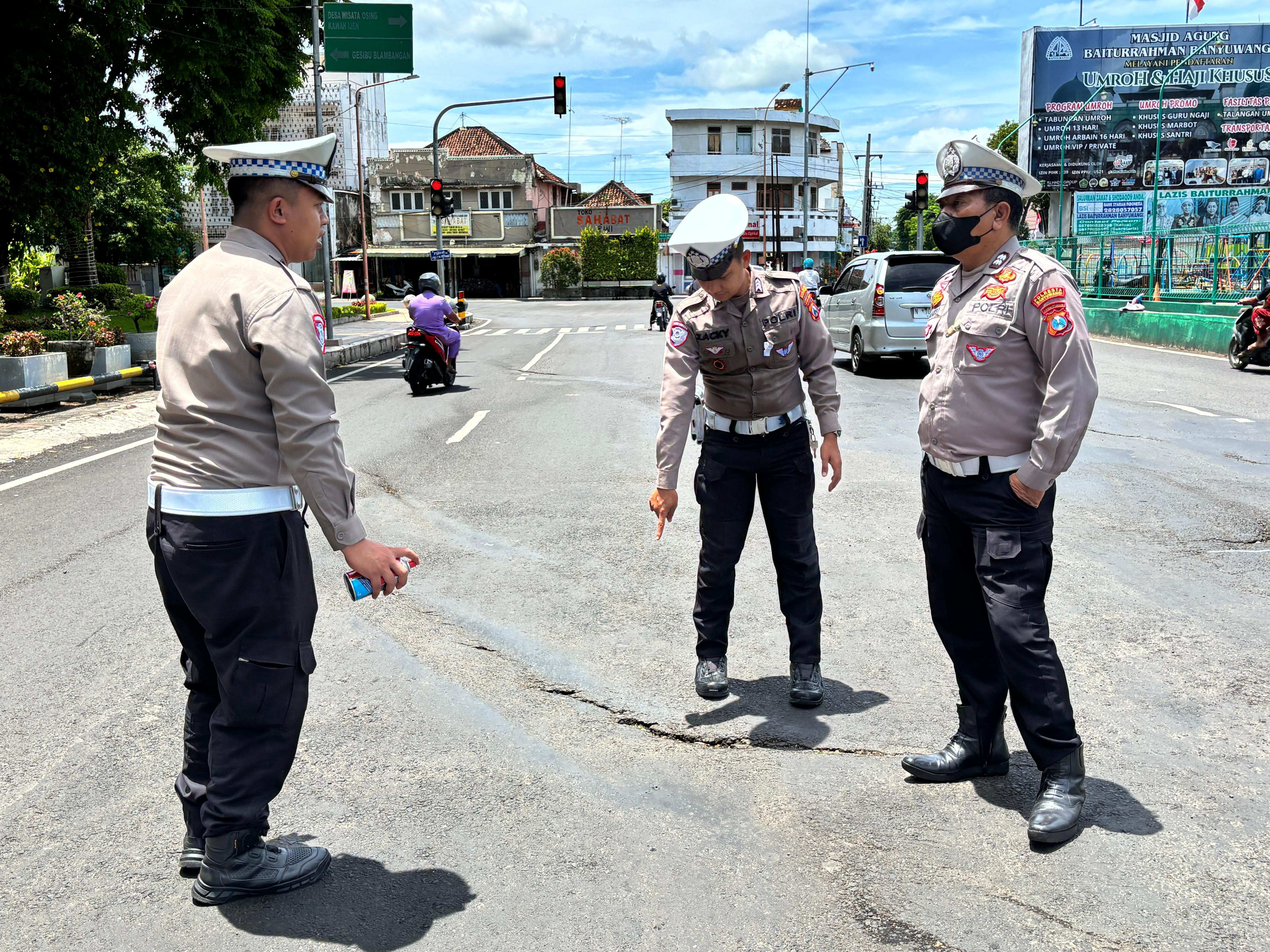Kami juga sampaikan terimakasih kepada bapak kapolresta banyuwangi beserta satlantas banyuwangi yang sigap memberikan tanda di ruas jalan rusak depan masjid besar baiturahman banyuwangi agar tidak memakan korban.