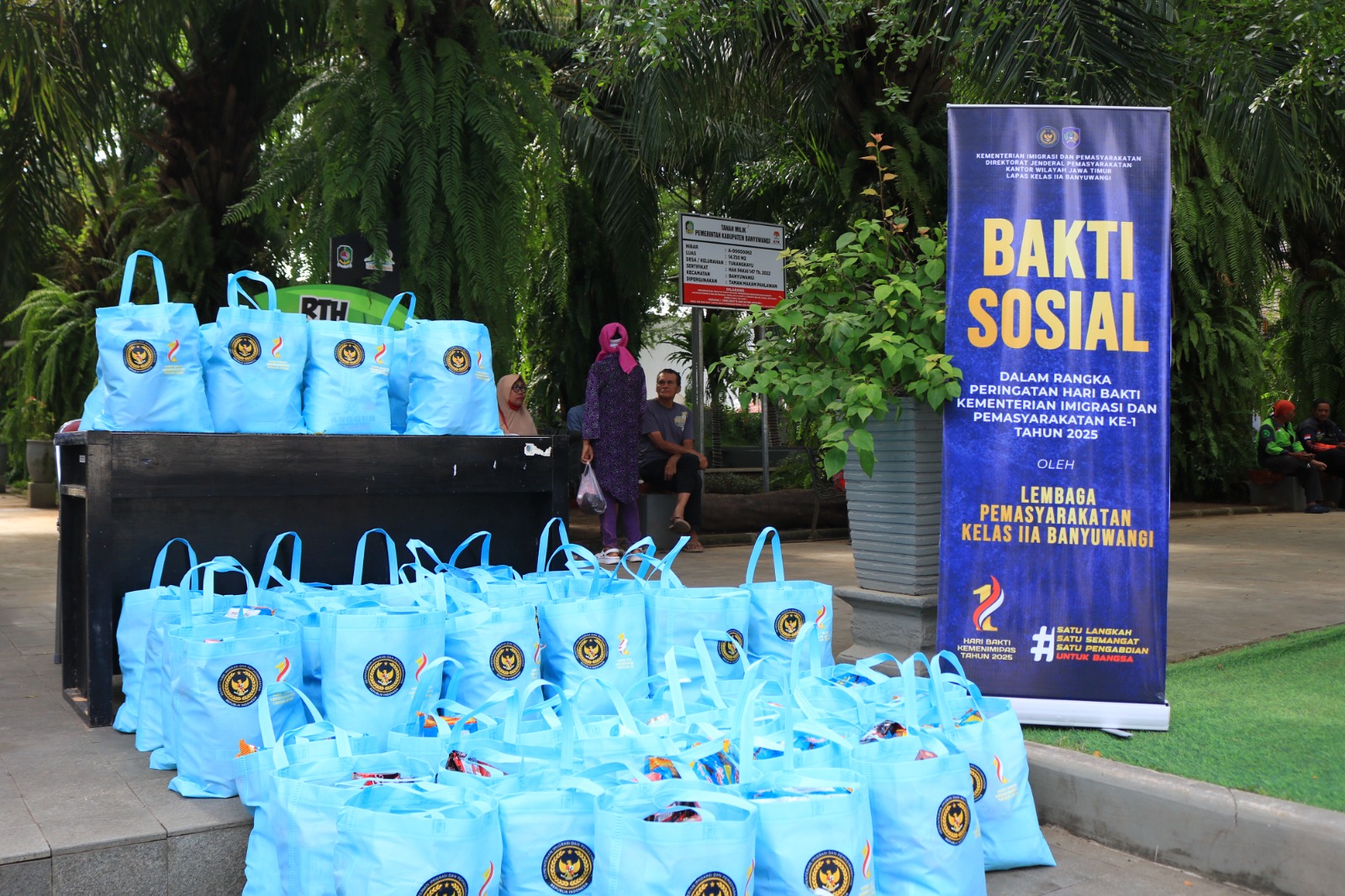 Banyuwangi.mediabangsa.net// Dalam rangka memeriahkan peringatan Hari Bakti Kementerian Imigrasi dan Pemasyarakatan (Kemenimipas) yang ke 1 pada tahun 2025, Lembaga Pemasyarakatan (Lapas) Kelas IIA Banyuwangi menggelar bakti sosial dengan membagikan paket sembako kepada masyarakat. Kegiatan positif ini dilaksanakan di depan Taman Makam Pahlawan (TMP) Wisma Raga Satria, Banyuwangi, Jumat (14/11/2025).