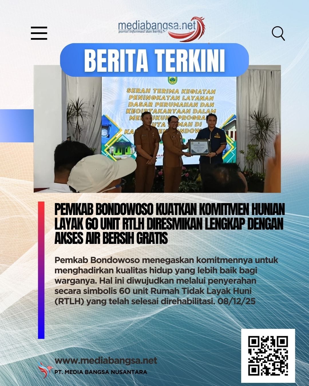 Bondowoso.mediabangsa.net,// Pemerintah Kabupaten (Pemkab) Bondowoso menegaskan komitmennya untuk menghadirkan kualitas hidup yang lebih baik bagi warganya. Hal ini diwujudkan melalui penyerahan secara simbolis 60 unit Rumah Tidak Layak Huni (RTLH) yang telah selesai direhabilitasi. Senin, (08/12/2025).